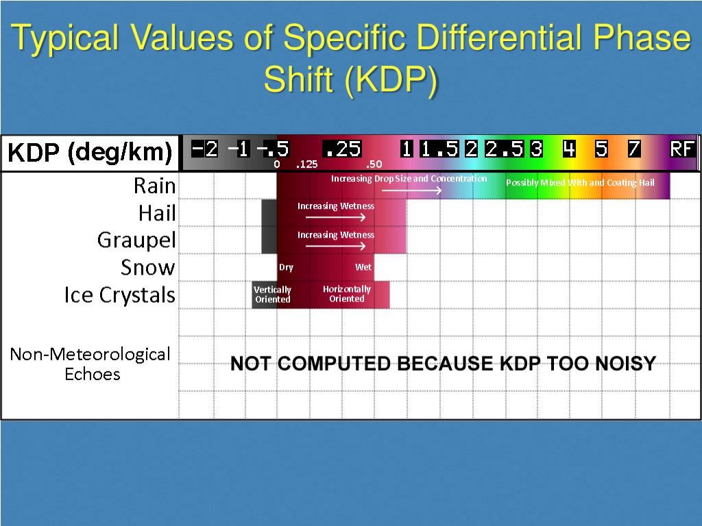 Forward Propagation has its Advantages Gradients Most Important= KDP!!! Immune to partial (< 40%) beam blockage, attenuation, radar calibration, presence of hail Used primarily for rainfall estimation