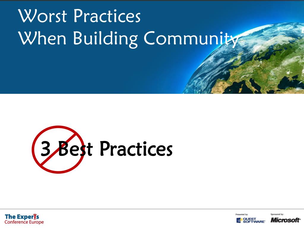 Worst PracticesWhen Building Community 3 Best Practices