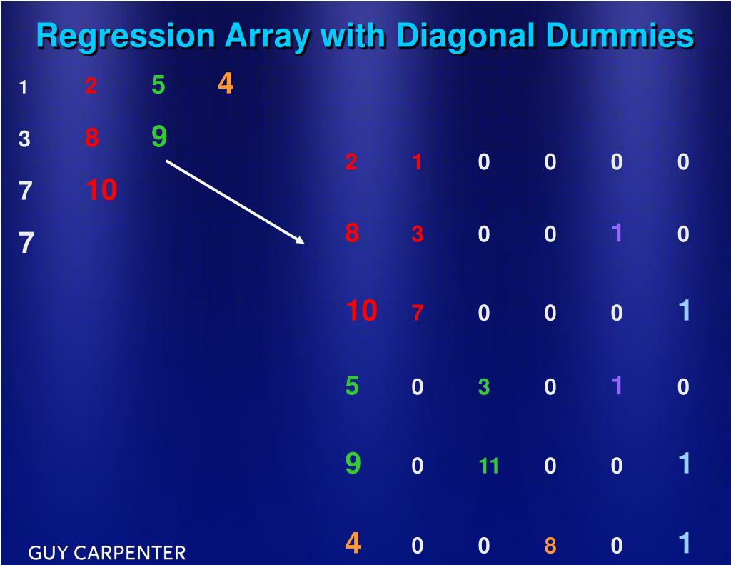 Regression Array with Diagonal Dummies 1254 3 89 710 7 21 0 0 0 0 83 0 0 1 0 107 0 0 0 1 5 0 3 0 1 0 9 0 11 0 0 1 4 0 0 8 0 1