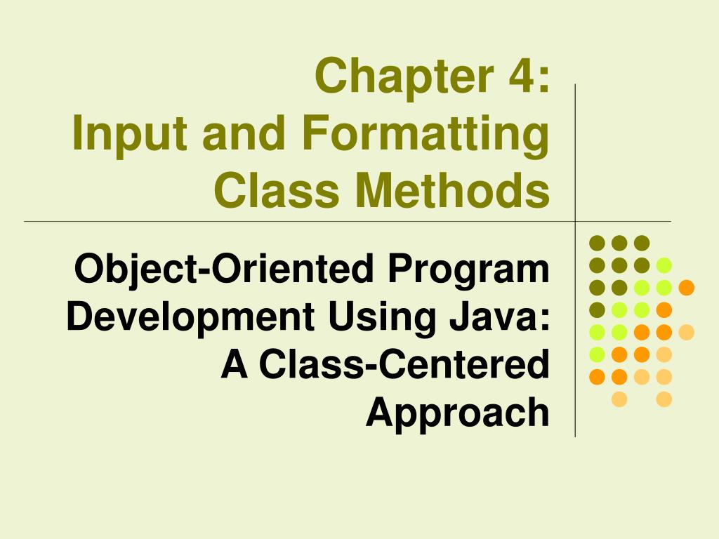 Chapter 4: Input and Formatting Class Methods Object-Oriented Program Development Using Java: A Class-Centered Approach