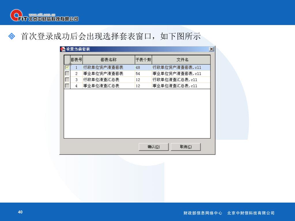 首次登录成功后会出现选择套表窗口,如下图所示首次登录成功后会出现选择套表窗口,如下图所示