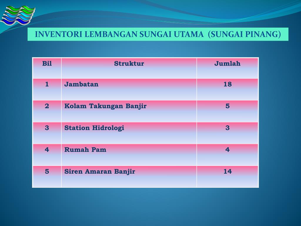 LembanganUtama : Sungai Pinang Keluasan : 50.97 km2 Keluasandalam Daerah TimurLaut : 50.97 km2