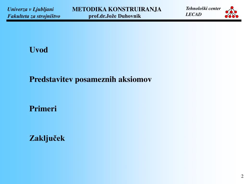 Uvod Predstavitev posameznih aksiomov Primeri Zaključek