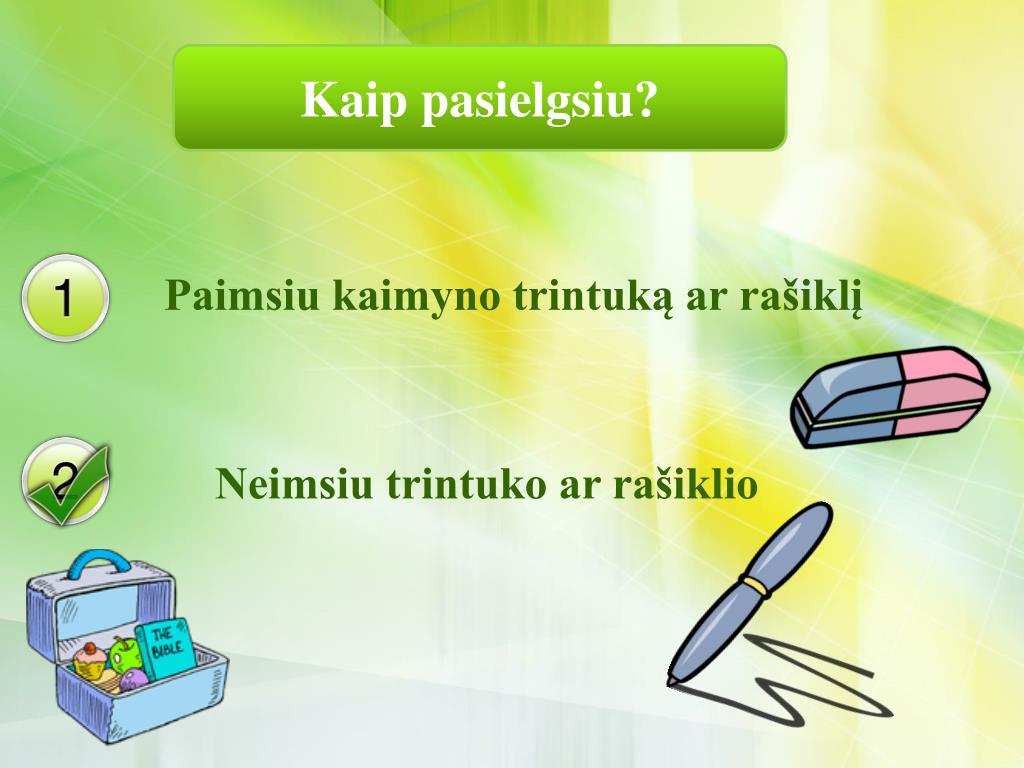 Paimsiu kaimyno trintuką ar rašiklį Neimsiu trintuko ar rašiklio Kaip pasielgsiu?