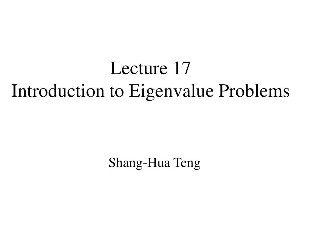 Lecture 17 Introduction to Eigenvalue Problems. Shang-Hua Teng. Eigenvalue Problems. Eigenvalue problems occur in many areas of science and engineering E.g., Structure analysis It is important for analyzing numerical and linear algebra algorithms