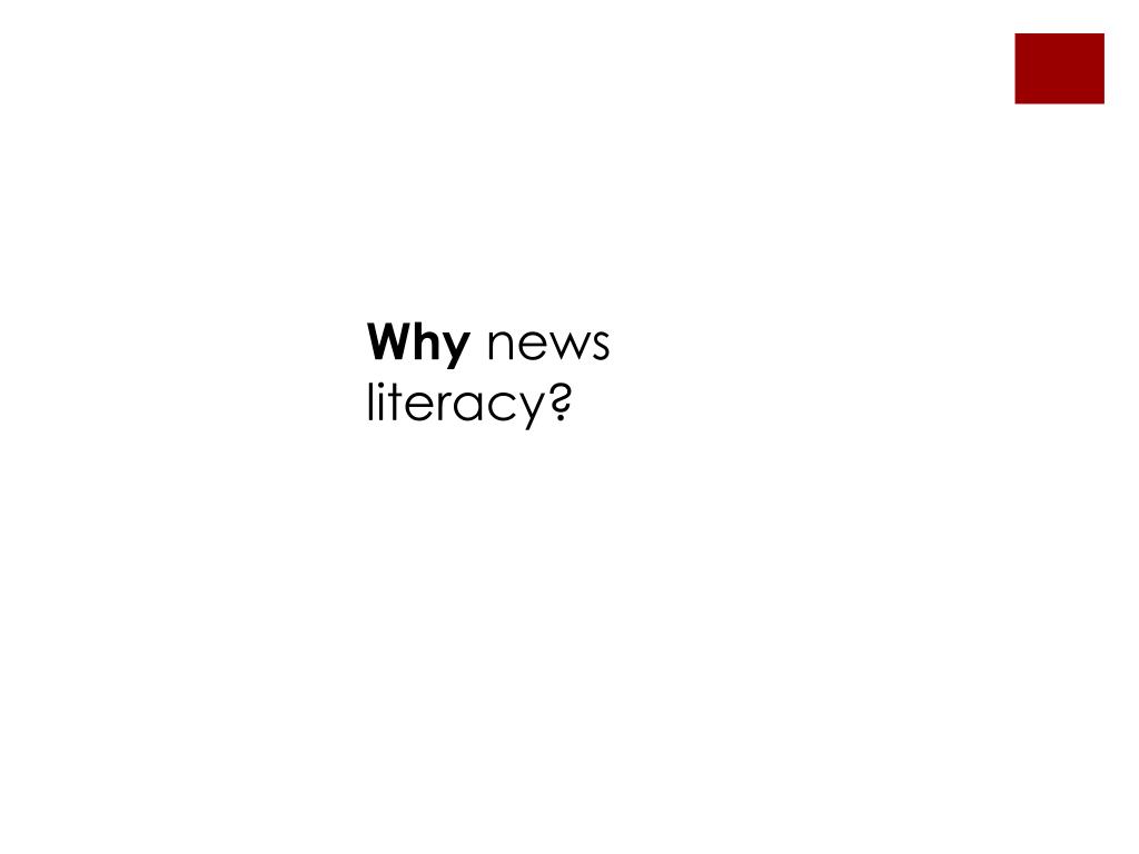 What is news literacy?. News literacy is the ability to access, analyze, evaluate, and contribute to news in a variety of forms and means and an understanding of why this ability matters. Why news literacy?. Reason #1.