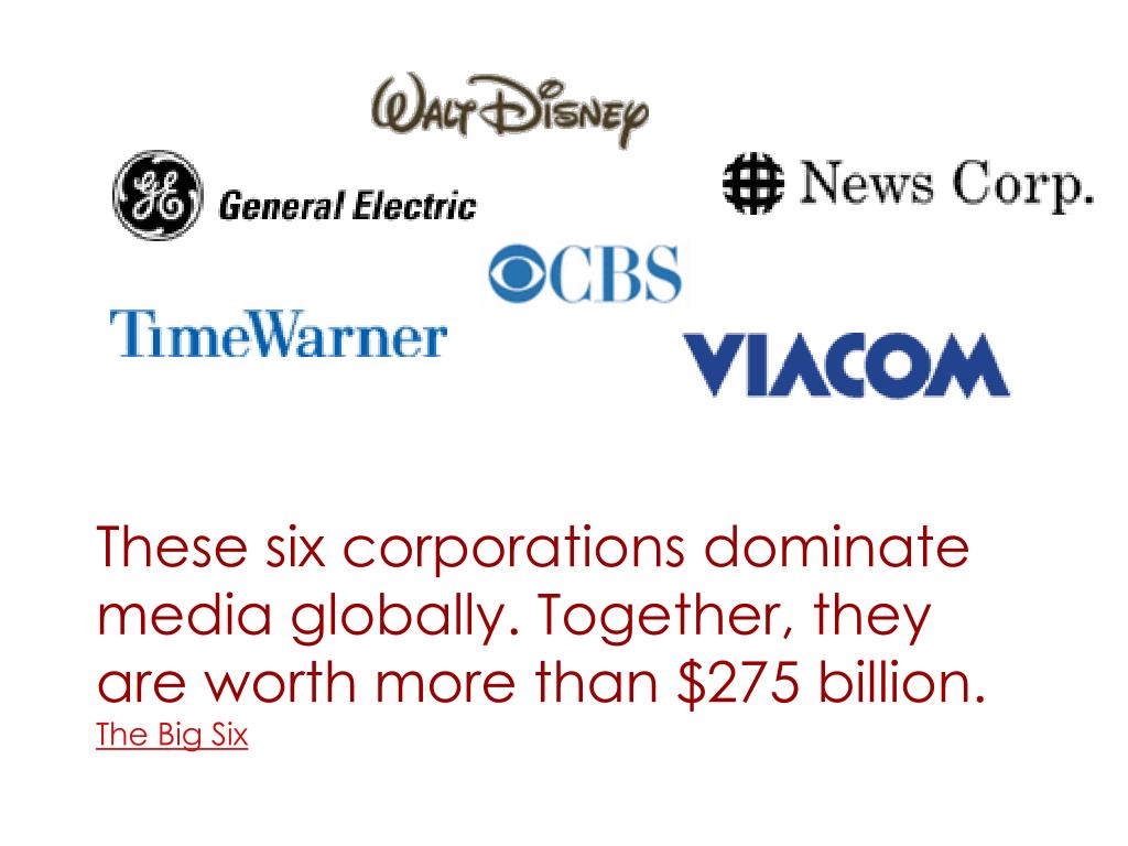 These six corporations dominate media globally. Together, they are worth more than $275 billion.The Big Six