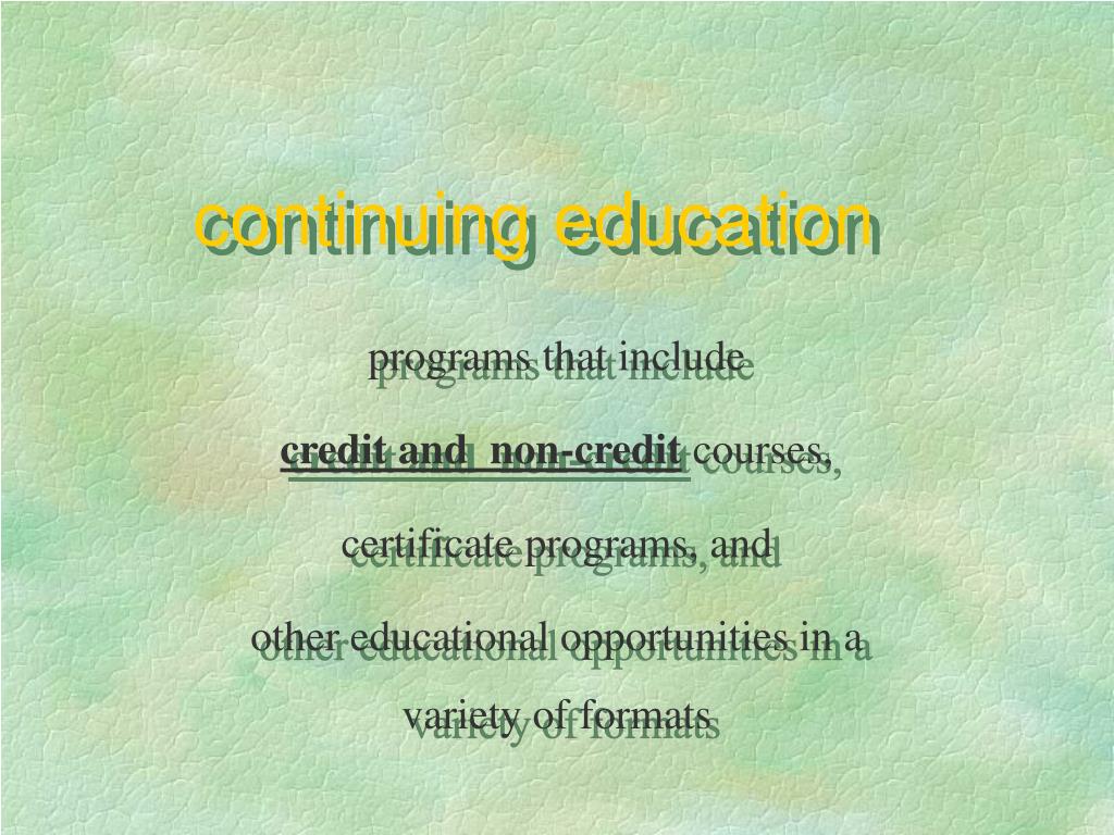 continuing education programs that include credit and non-credit courses, certificate programs, and other educational opportunities in a variety of formats
