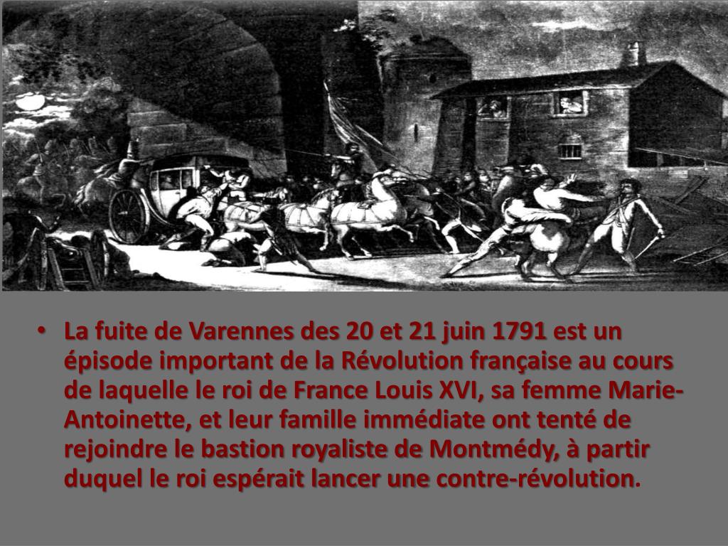 La fuite de Varennes des 20 et 21 juin 1791 est un épisode important de la Révolution française au cours de laquelle le roi de France Louis XVI, sa femme Marie-Antoinette, et leur famille immédiate ont tenté de rejoindre le bastion royaliste de Montmédy, à partir duquel le roi espérait lancer une contre-révolution.