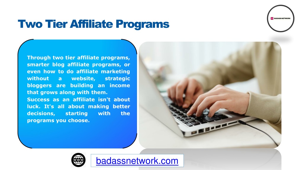7. Two Tier Affiliate Programs Through two tier affiliate programs, smarter blog affiliate programs, or even how to do affiliate marketing without a website, bloggers are building that grows along with them. Success as an affiliate isn't about luck. It's all about making better decisions, starting programs you choose. strategic income an with the badassnetwork.com
