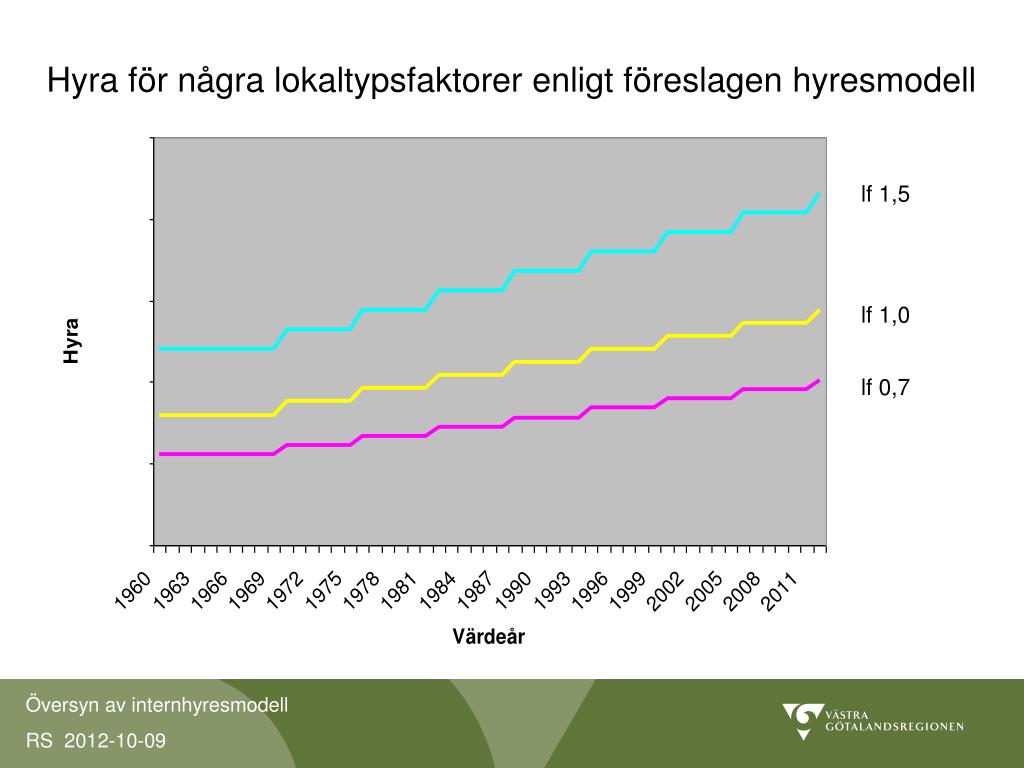 Hyra för några lokaltypsfaktorer enligt föreslagen hyresmodell lf 1,5 lf 1,0 lf 0,7