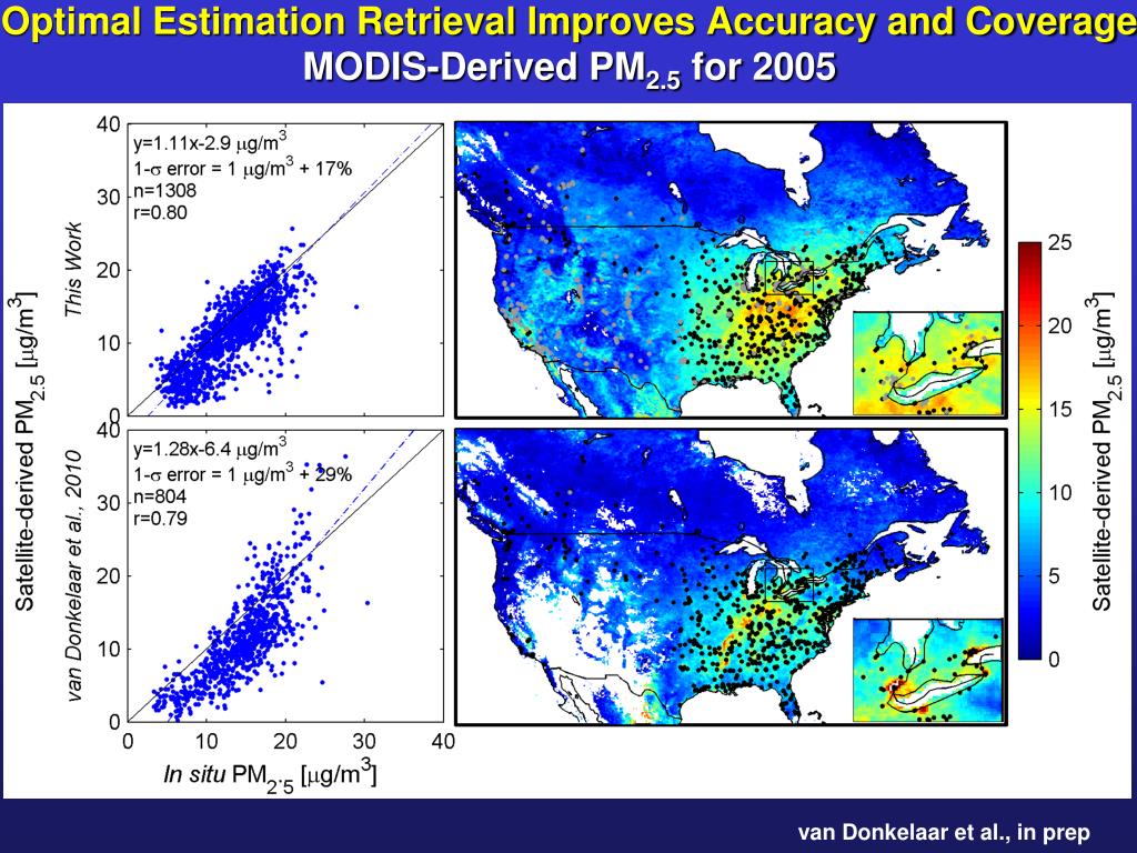 Optimal Estimation Retrieval Improves Accuracy and CoverageMODIS-Derived PM2.5 for 2005 van Donkelaar et al., in prep