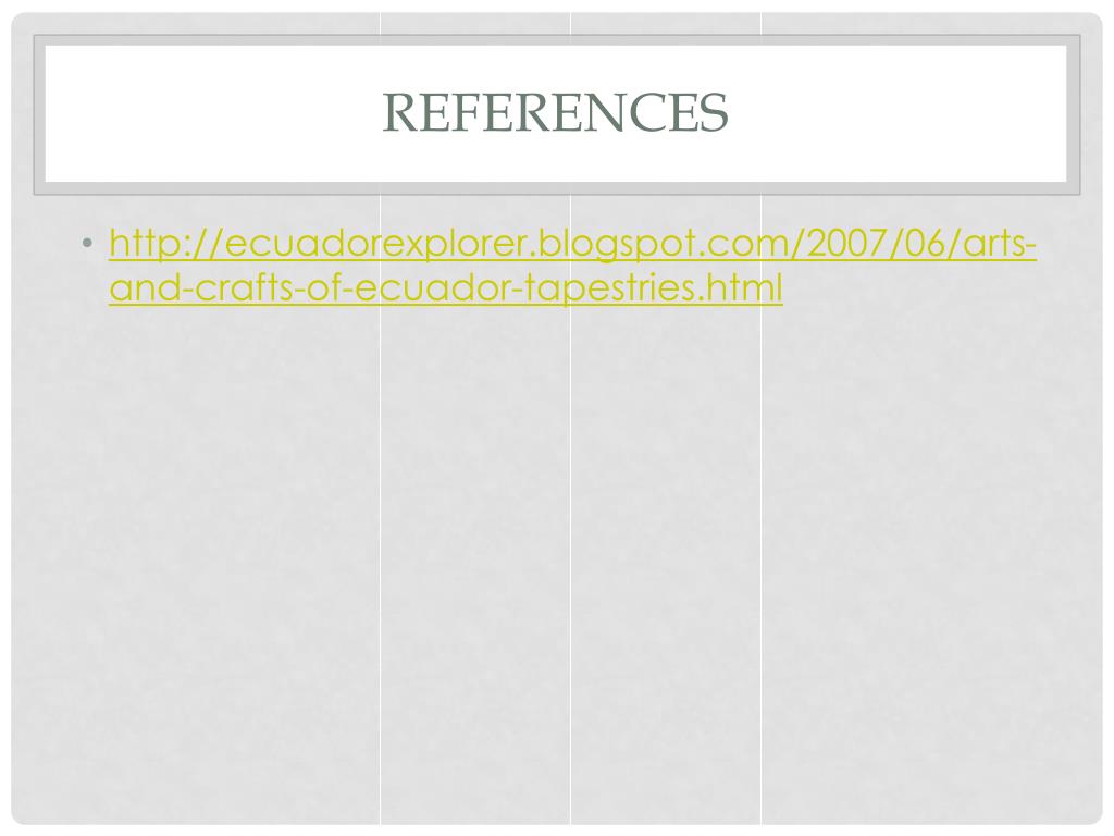 References • http://ecuadorexplorer.blogspot.com/2007/06/arts-and-crafts-of-ecuador-tapestries.html