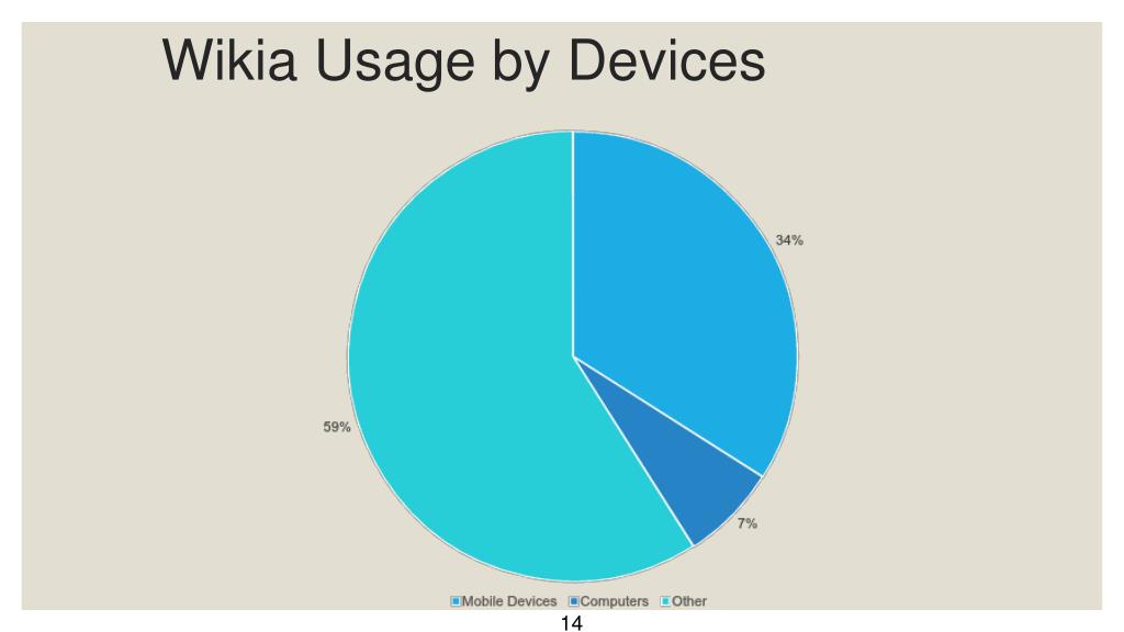 Why Does it Matter? • Wikia is becoming a larger and larger database for accessing wikis, and currently has over 370,000 wikis in it’s database. • It has over 100,000,000 users and hundreds of admins employed. • It is rapidly growing, having extended by 347% through mobile phones last year. • It is currently rated as a Top 10 Social Media site by Nielsen Ratings 13