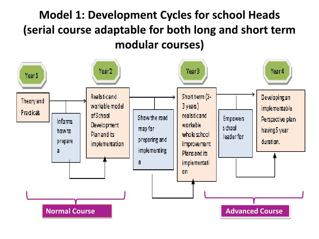 Model 1: Development Cycles for school Heads (serial course adaptable for both long and short term modular courses) Normal Course Advanced Course