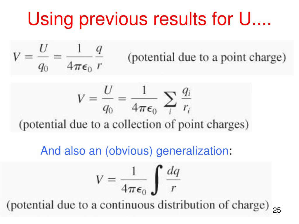 V from E • Given a charge distribution, it is straight forward (in principle!) to find V • Sometimes you can get V starting from E