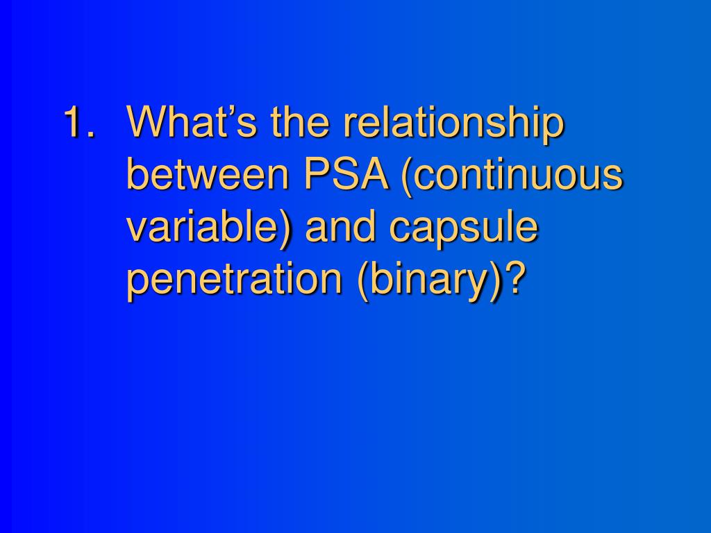 What’s the relationship between PSA (continuous variable) and capsule penetration (binary)?