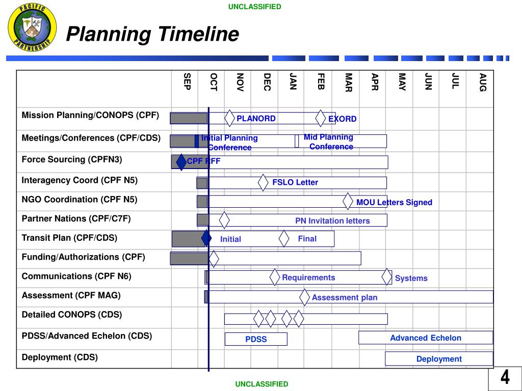 Planning Timeline PLANORD EXORD Mid Planning Conference Initial Planning Conference CPF RFF FSLO Letter MOU Letters Signed PN Invitation letters Final Initial Requirements Systems Assessment plan Advanced Echelon PDSS Deployment