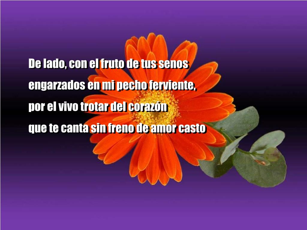 De lado, con el fruto de tus senos engarzados en mi pecho ferviente, por el vivo trotar del corazón que te canta sin freno de amor casto