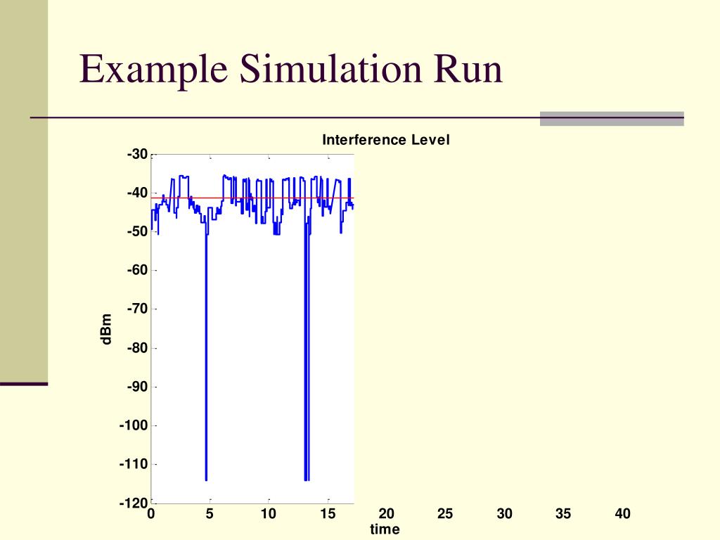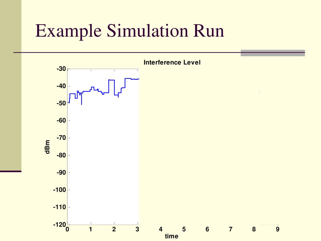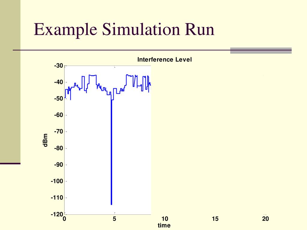Properties of Random-Distance Model • Moved to a computer simulation • Experimentally calculated: • P(outage), • Expected Time of Outage, • Max and mean power levels over time • Done on Matlab – Monte Carlo simulation