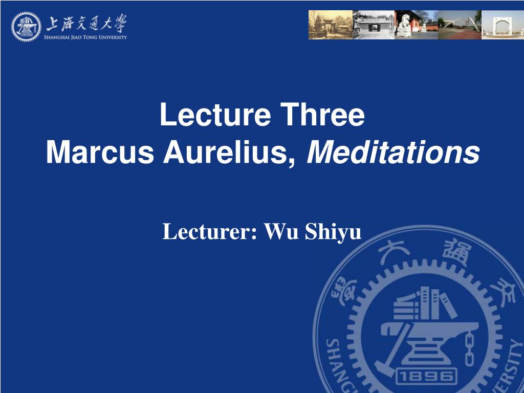Lecture Three Marcus Aurelius, Meditations Lecturer: Wu Shiyu