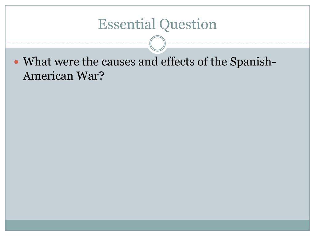 Spanish-American War. Chapter 9 section 2. Essential Question. What were the causes and effects of the Spanish-American War?. Cubans Rebel Against Spanish Rule. By 1897 American businessmen had invested $50 million in Cuban business ventures