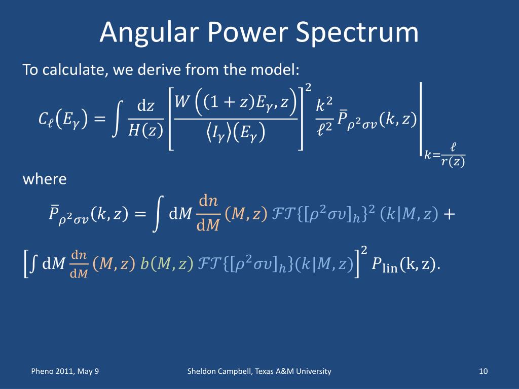 Angular Power Spectrum To calculate, we derive from the model: where . Sheldon Campbell, Texas A&M University