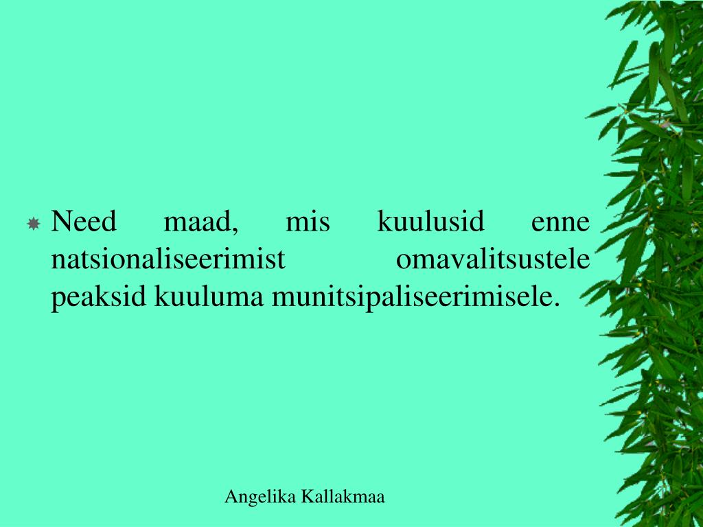 Need maad, mis kuulusid enne natsionaliseerimist omavalitsustele peaksid kuuluma munitsipaliseerimisele. Angelika Kallakmaa