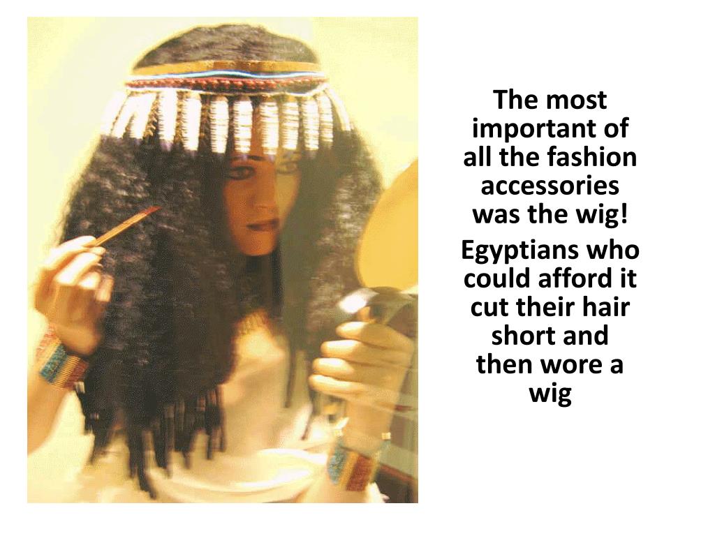 The most important of all the fashion accessories was the wig! Egyptians who could afford it cut their hair short and then wore a wig