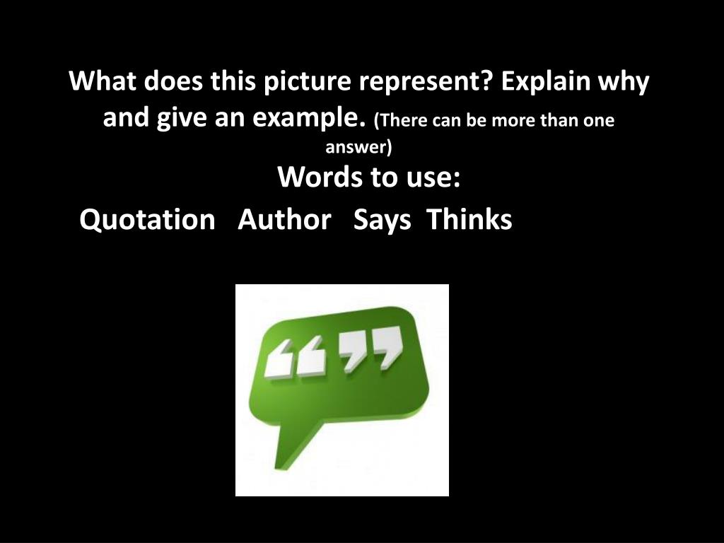 What does this picture represent? Explain why and give an example. (There can be more than one answer) Words to use: Quotation Author Says Thinks