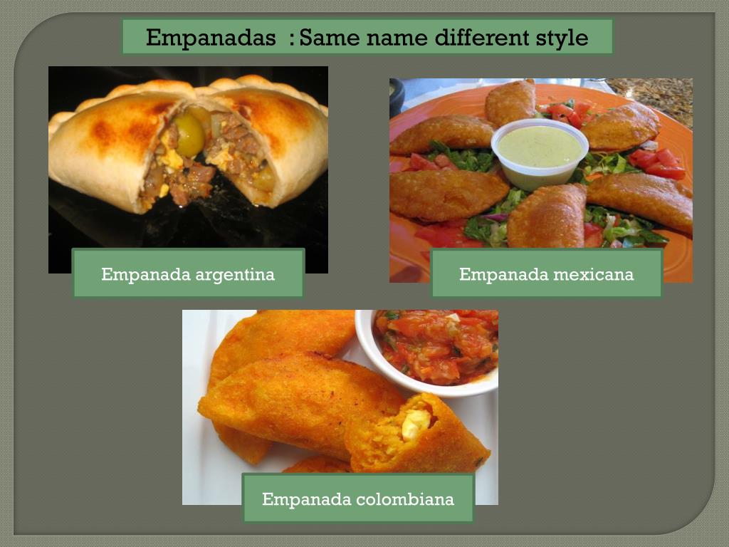 Empanadas : Same name different style Empanada argentina Empanada mexicana Empanada colombiana