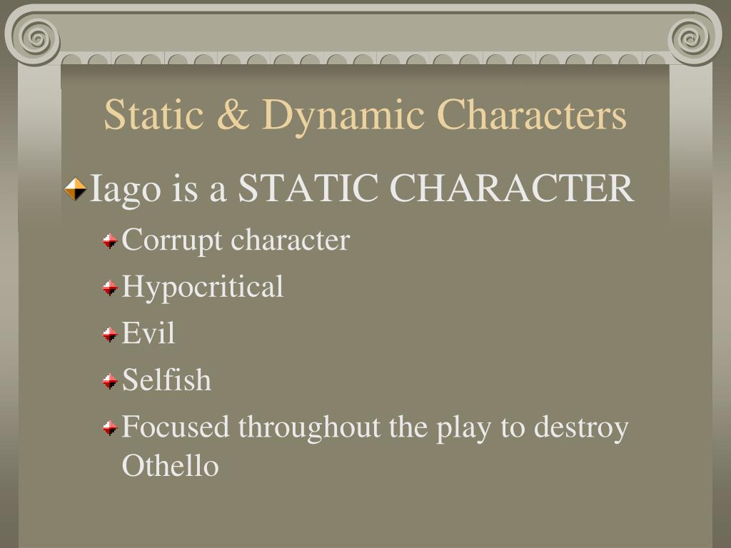 Static & Dynamic Characters • Iago is a STATIC CHARACTER • Corrupt character • Hypocritical • Evil • Selfish • Focused throughout the play to destroy Othello