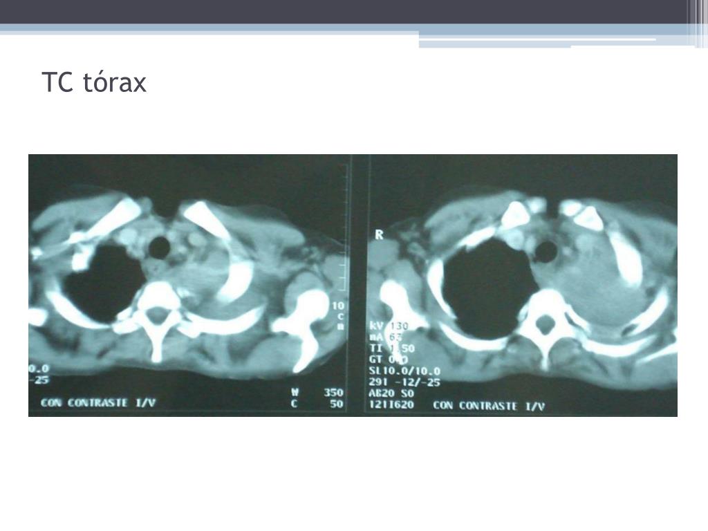 Síndrome de Pancoast - Diagnóstico • Anamnese e exame físico • RX de tórax demonstra um tumor apical, (em alguns casos, pode ser negativa e o tumor identificado apenas na TAC do tórax. • RNM é útil para melhor avaliação da invasão tumoral através da pleura, do envolvimento do plexo braquial e dos vasos subclávios. • Broncoscopia e citologia são conclusivas em 10 a 20%. • O método diagnóstico mais eficaz é a punção transtorácica percutânea guiada por USG ou TC