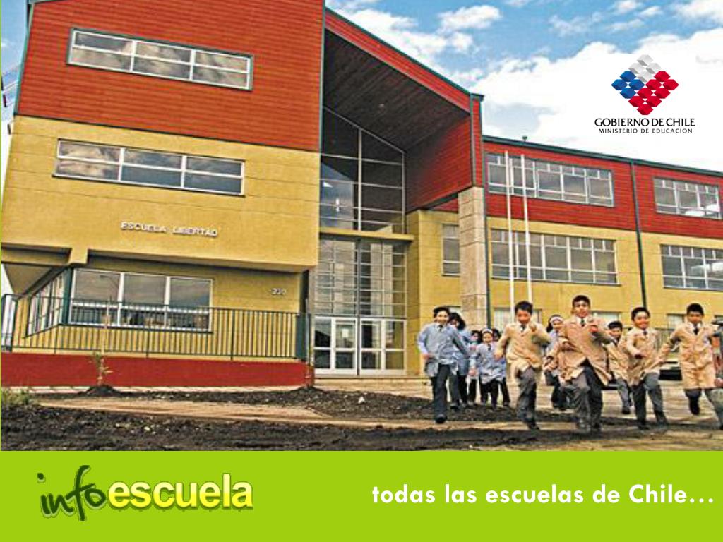 todas las escuelas de Chile…. ¿Qué es Infoescuela?. Es un sistema de información en línea orientado a las familias para conocer de manera directa las principales características de los establecimientos educacionales reconocidos por el MINEDUC.