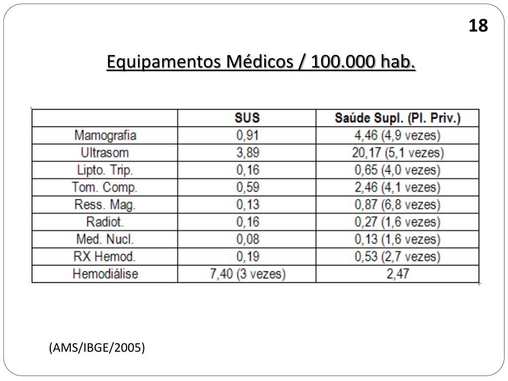 18 Equipamentos Médicos / 100.000 hab. (AMS/IBGE/2005)