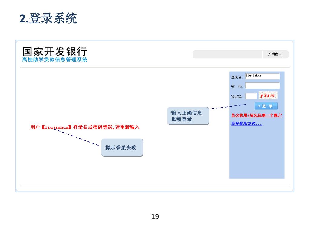 2.登录系统 输入正确信息重新登录 提示登录失败 19