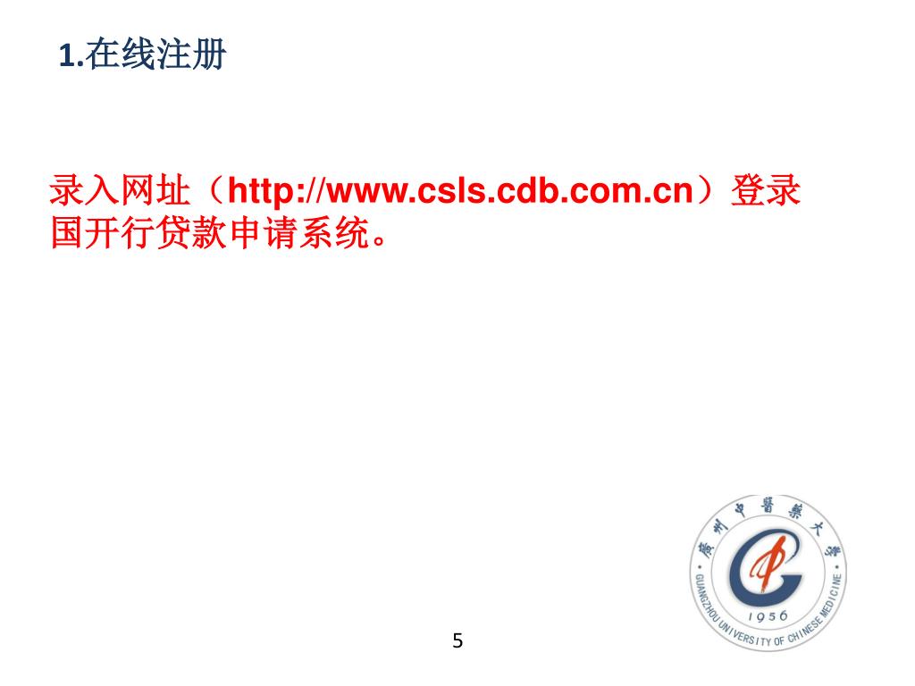 1.在线注册 录入网址(http://www.csls.cdb.com.cn)登录国开行贷款申请系统。 5