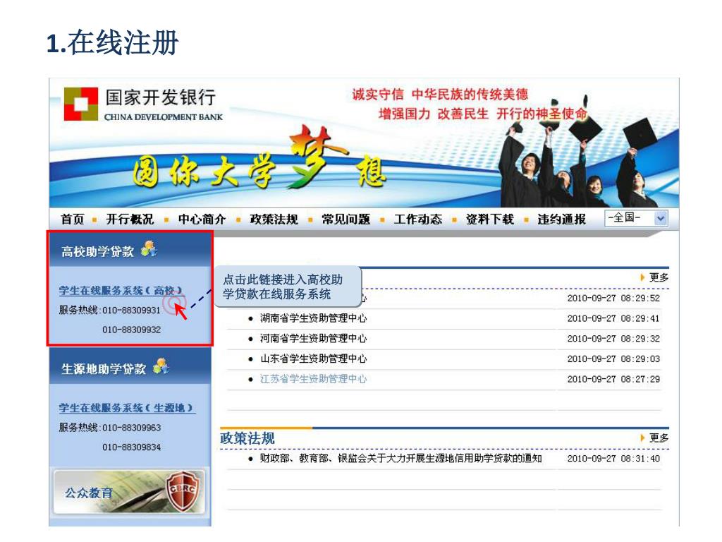 1.在线注册 点击此链接进入高校助学贷款在线服务系统 6