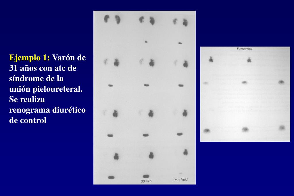 Ejemplo 1: Varón de 31 años con atc de síndrome de la unión pieloureteral. Se realiza renograma diurético de control