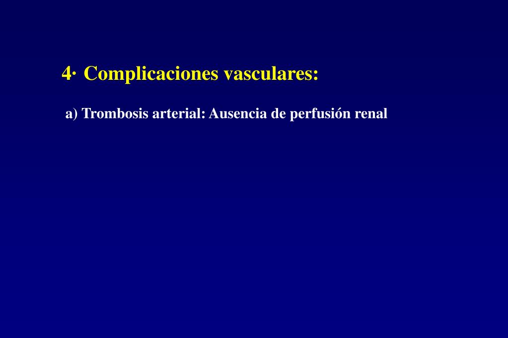 4· Complicaciones vasculares: a) Trombosis arterial: Ausencia de perfusión renal