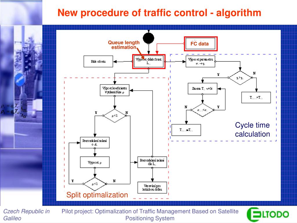 New procedure of traffic control - algorithm Queue length estimation FC data Cycle time calculation Split optimalization Pilot project: Optimalization of Traffic Management Based on Satellite Positioning System