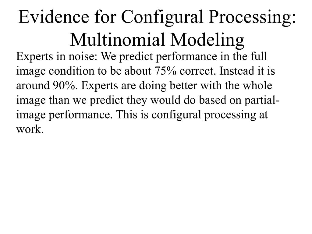 Evidence for Configural Processing: Multinomial Modeling To test for configural processing, we can use the accuracy rate in the partial image condition to make a prediction for the full image condition, assuming no configural processing. If performance in the full image condition exceeds the prediction, we have evidence that is consistent with configural processing.