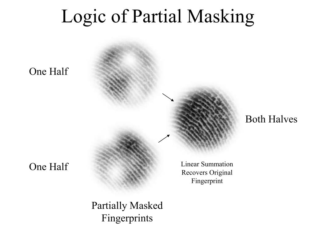 Logic of Partial Masking One Half Both Halves Linear Summation Recovers Original Fingerprint One Half Partially Masked Fingerprints