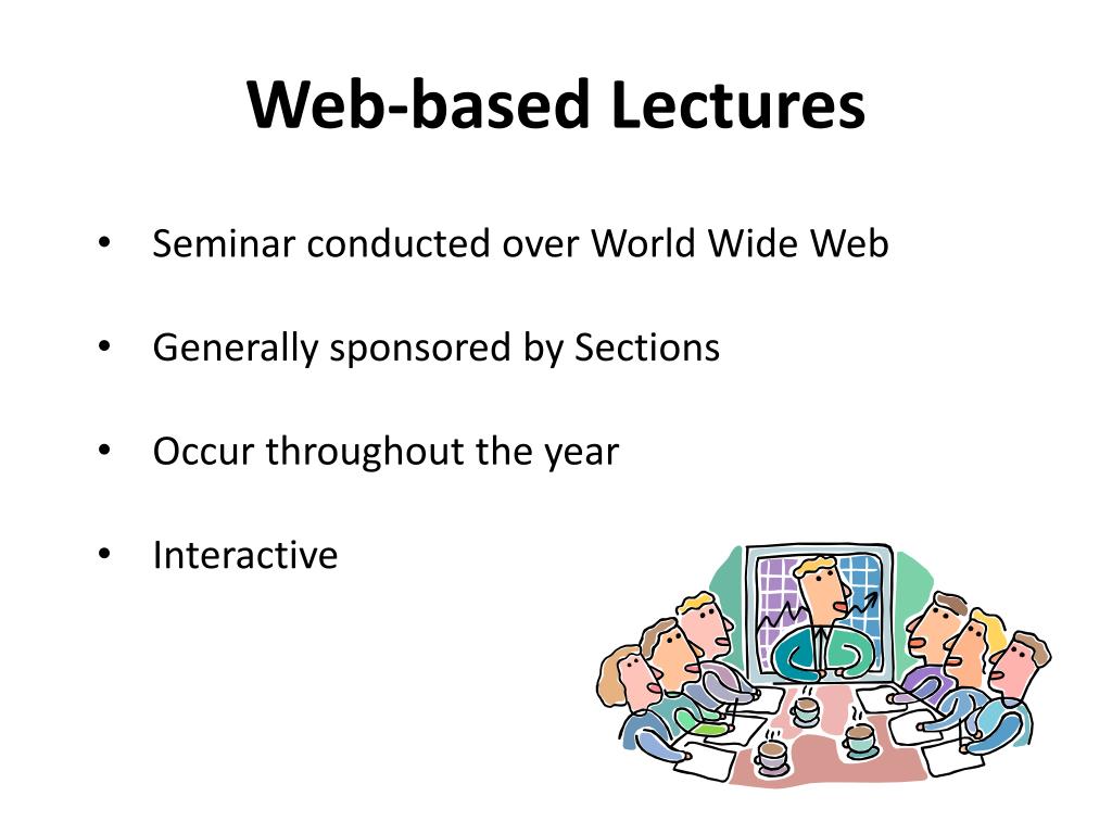 Web-based Lectures • Seminar conducted over World Wide Web • Generally sponsored by Sections • Occur throughout the year • Interactive