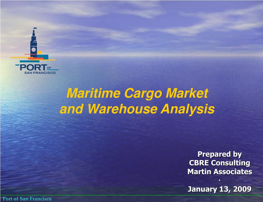 Maritime Cargo Market and Warehouse Analysis. Prepared by CBRE Consulting Martin Associates ∙ January 13, 2009. Study Purpose. Examine current Port of San Francisco cargo base Bulk Breakbulk Competing ports Current situation Factors influencing port selection