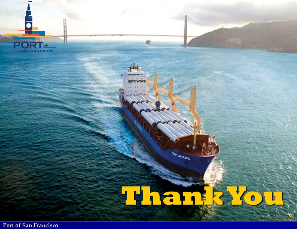 Breakbulk Steel Outlook Overall, steel imports reflect the strength of the US economy Near term forecast - flat volumes for Bay Area customers Port partnering with ILWU to increase productivity and competitiveness Illinois Street Bridge will offer more options to move freight inland via rail Bay Bridge Project Some steel work left to do, potential additional opportunities