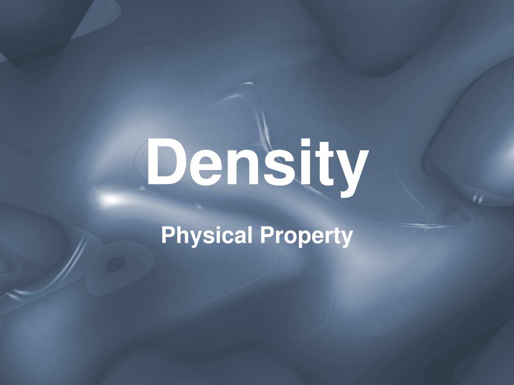 Density. Physical Property. Density: mass divided by the volume of a substance. Density = mass / volume. ASS. M. OR. D. V. OLUME. Density of solids, liquids, and gases. Density Increase as you move from the gas to solid phases Gas Liquid Solid