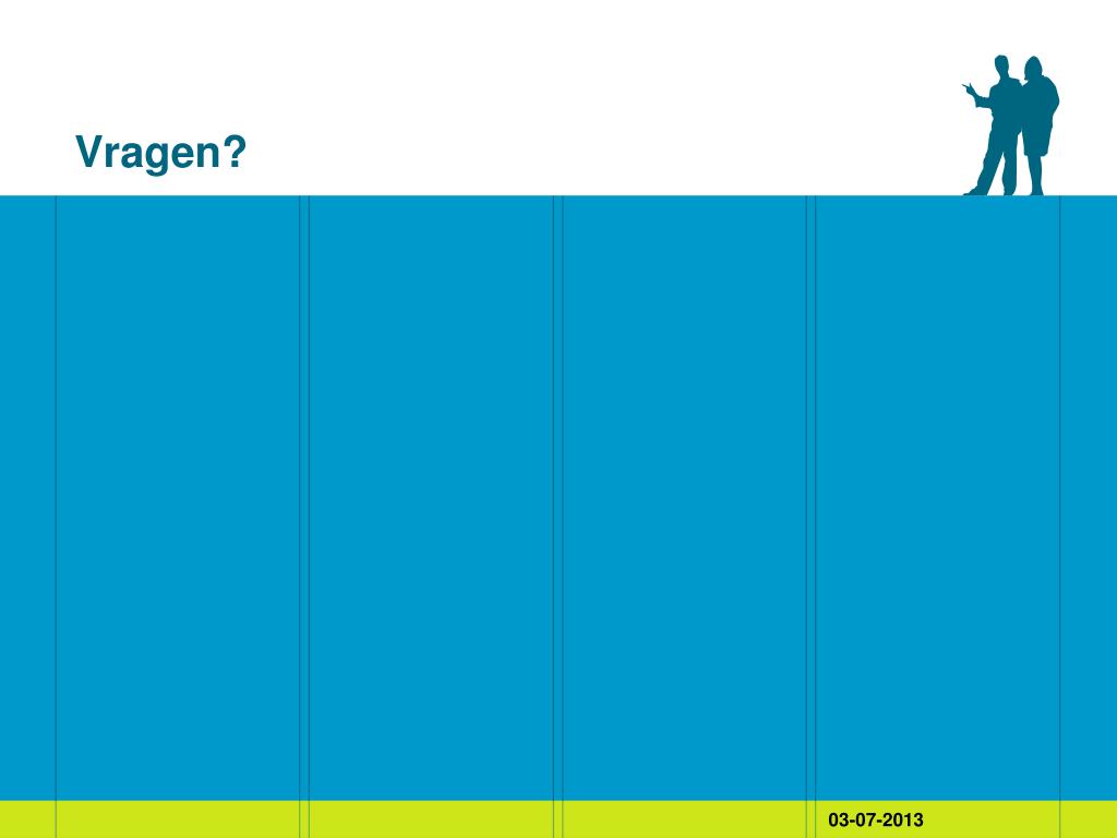 Vervolgstappen • Uitvoeren van een saneringsonderzoek, waarin afweging van het milieurendement, technische mogelijkheden en kosten • Uitwerking in een saneringsplan • In procedure brengen van het saneringsplan (met mogelijkheid om zienswijzen in te dienen) • Opstellen bestek en aanbesteding van het werk • Uitvoering van de sanering • Planning: • Saneringsonderzoek vóór november 2013 • Saneringsplan vóór december 2015 • Start sanering uiterlijk in 2017