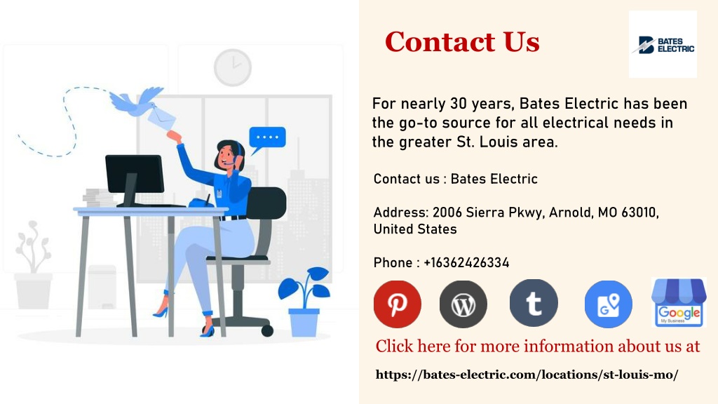Contact Us For nearly 30 years, Bates Electric has been the go-to source for all electrical needs in the greater St. Louis area. Contact us : Bates Electric Address: 2006 Sierra Pkwy, Arnold, MO 63010, United States Phone : +16362426334 Click here for more information about us at https://bates-electric.com/locations/st-louis-mo/