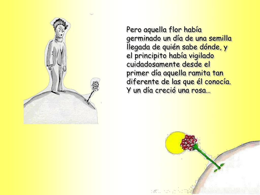 Pero aquella flor había germinado un día de una semilla llegada de quién sabe dónde, y el principito había vigilado cuidadosamente desde el primer día aquella ramita tan diferente de las que él conocía. Y un día creció una rosa…